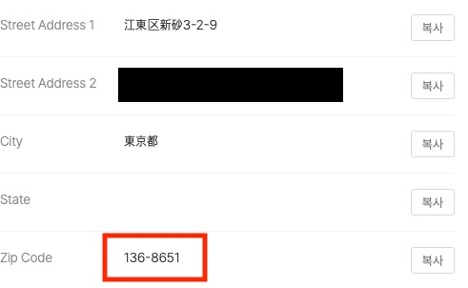 요즘 쓰는 훗타운 배대지 주소로 회원가입을 진행하니 되지 않는다. ㅡ.,ㅜ 그럴리가!! 나 다른 주소 없는데! 라고 외치다가 예전에 썼던 다른 배대지 주소를 입력해 봤다.